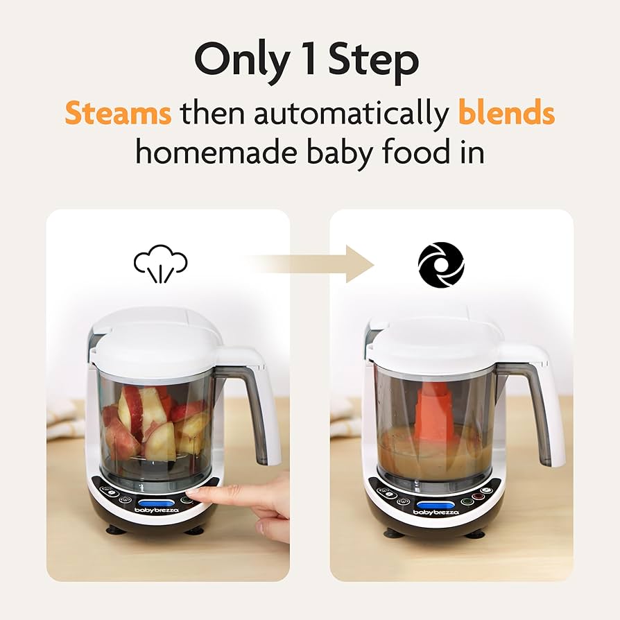 The Baby Brezza One Step Food Maker Deluxe is the easiest way to make homemade baby food. It automatically steams, then blends homemade baby food in one easy step with no transfer after cooking like other food makers. Makes 3.5 cups of healthy and delicious baby food in as little as 10 minutes. Use the LCD Control Panel to choose from 3 functions (Steam & Blend; Steam Only; Blend Only). Includes 3 reusable food pouches and filling funnels so you can easily make, store and serve baby food